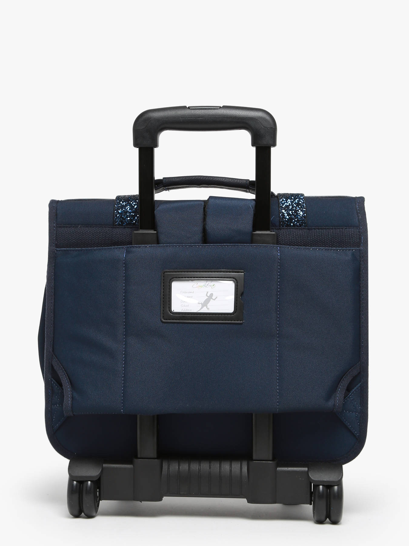 Deze boekentas op wieltjes uit de Vintage Fantasy collectie van het merk Caméléon heeft een breedte van 38 cm. Ideaal voor het 1ste, 2de en 3de leerjaar! Dit model heeft een duidelijke vintage look, dankzij de twee voorvakjes in lederlook en de riempjes met gesp. Deze boekentas beschikt over twee compartimenten, die schriften (24x32 cm) en schoolboeken van A4 formaat kunnen bevatten. Onder de overslagflap bevindt zich ook een uniek opbergvakje, met een gratis liniaal! De twee vakjes vooraan sluiten met rits, en zijn ideaal om een snack of andere kleine spulletjes in te stoppen. Dit model beschikt ook over een naamlabel aan de achterzijde, en kan makkelijk gesloten worden dankzij een dubbel kliksysteem. Voor optimaal comfort zijn de rugzijde en schouderbanden gewatteerd. Dankzij enkele reflectoren kan uw kind zich ook veilig in het verkeer begeven. De schouderriemen dienen te worden opgeborgen in het rugcompartiment bij gebruik van de wieltjes. Een extra flap schermt de wielen af wanneer de tas op de rug wordt gedragen.