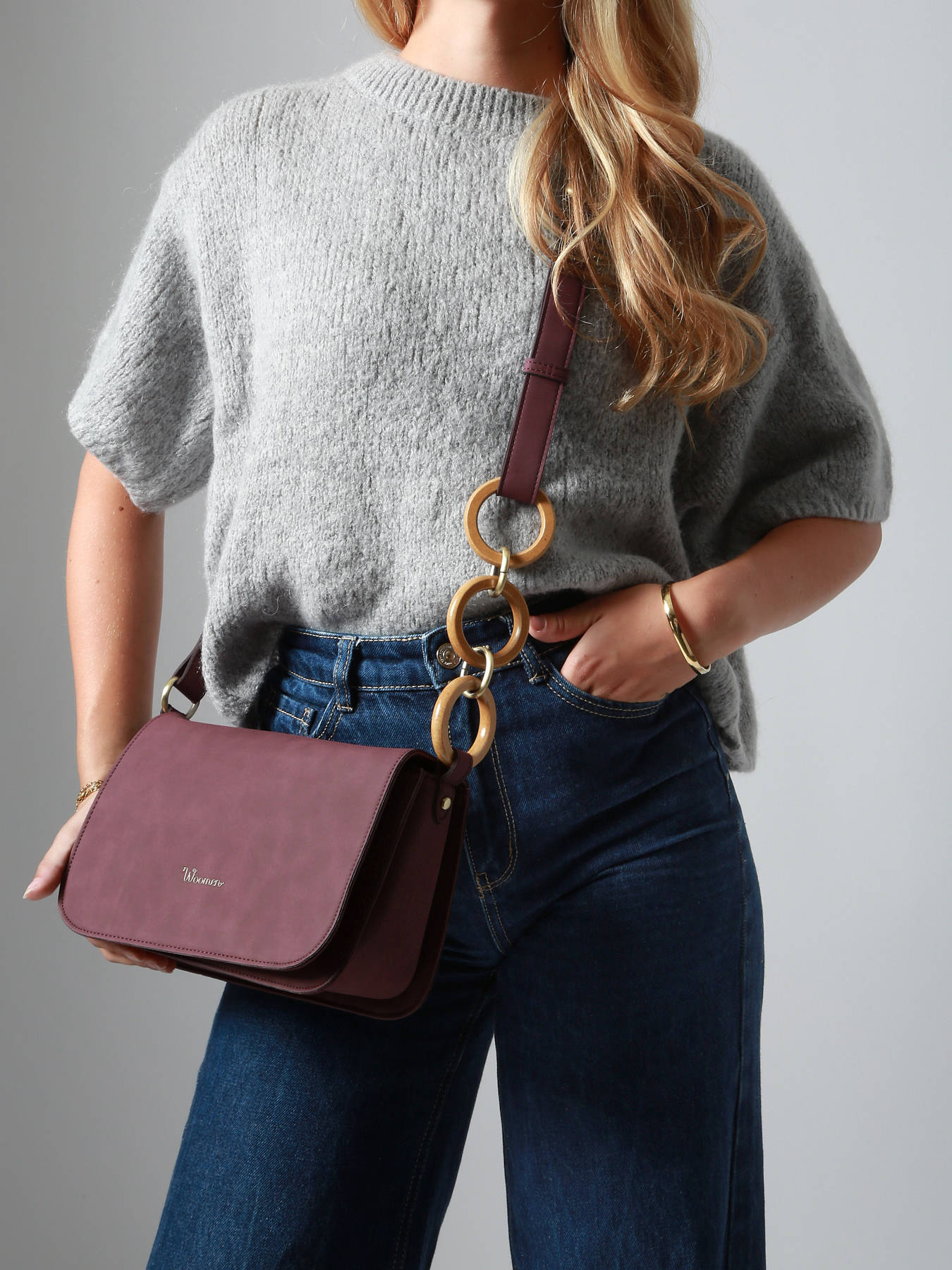 De WOOMEN cross body tas uit de HELICONIA-lijn is ontworpen in gerecycled polyurethaan met een voering van katoen en linnen voor een verminderde ecologische impact. Hij wordt gesloten met een magnetische flap en heeft een verstelbare schouderriem versierd met verstrengelde ringen voor een unieke stijl. Binnenin zorgt een hoofdvak met een ritszak voor een optimale organisatie. Aan de buitenkant voegen twee zakken op de achterkant extra praktisch nut toe. De tas toont ook een nieuw, onderscheidend logo, wat een moderne en verfijnde touch toevoegt aan dit model, dat zowel functioneel als elegant is