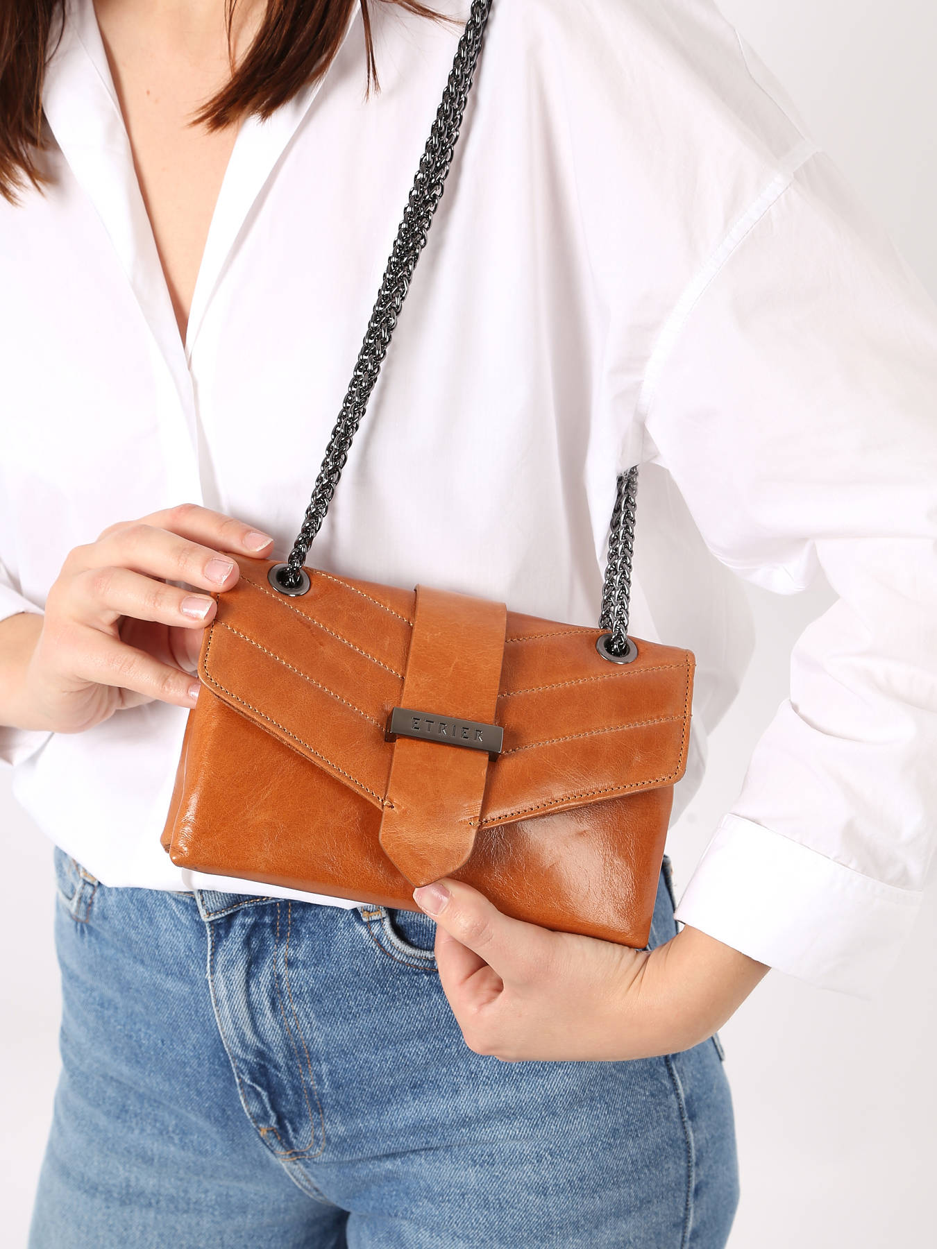 De cross body tas ETRIER uit de JANA AMOUR-lijn is verkrijgbaar in twee maten, hier in de mini-versie. Verkrijgbaar in nieuwe seizoenskleuren, dit model is een echte favoriet en is gemaakt in Italië. Het leer heeft een subtiele glans met een craquelé-effect en is doorgestikt, wat de originaliteit van deze tas benadrukt. Het is gemaakt van rundleer en sluit met een flap met een magnetische drukknop. De tas heeft een schouderriem van ketting en leer, en kan zowel over de schouder als crossbody gedragen worden. Binnenin bevinden zich twee compartimenten, een steekvak en een ritsvak, gevoerd met katoen voor een nette afwerking.