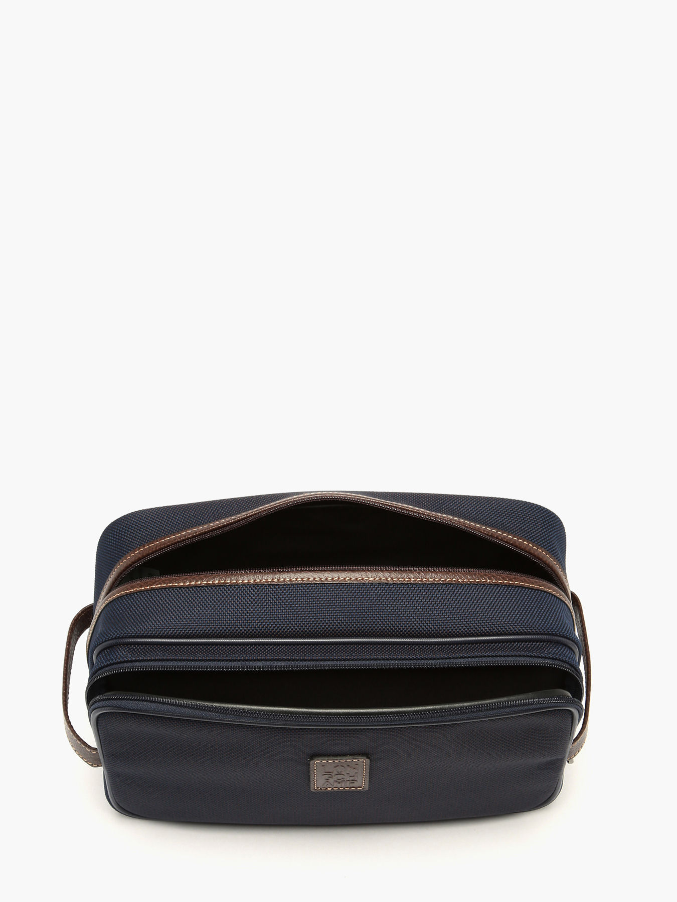 Deze ruime Boxford toilettas van Longchamp heeft twee ritsvakken, een handvat en een wasbare binnenkant.